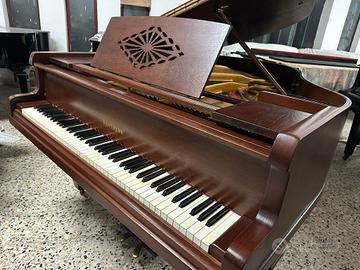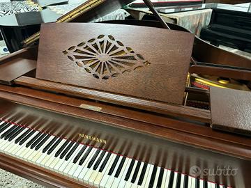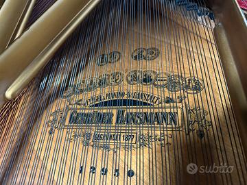 Proponiamo in vendita questo bellissimo pianoforte mezza coda Hansmann. Strumento in ottime condizioni sia meccaniche che di mobilio, due pedali, tastiera in ivorite, suono caldo ma allo stesso tempo brillante e potente, mobile intarsiato in alcune sue parti. Pianoforte adatto ad ogni tipologia di strumentisti e proposto ad un prezzo davvero eccellente. Nel prezzo ivato di 3490€ comprendiamo: - Trasporto nell'arco di 50 km; - Prima accordatura da fare in sede; - Panchetta seminuova in pelle; - Garanzia di 3 anni su tutto. Per info