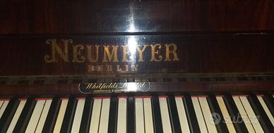 Pianoforte a muro Neumeyer Berlin, antico di fine 800, ( è possibile risalire all'anno di fabbricazione tramite il codice numerico presente nelle immagini ) mobile interamente in massello di mogano rosso decorato con bellissimo e pregiato intarsio, il legno non presenta usura dovuta al tempo in quanto ben conservato, le meccaniche interne invece necessitano di manutenzione ed accordatura. Mobile trasformabile in accessorio d'arredo di prestigio e valore. Nel caso di ripristino dello strumento, il valore di mercato è stimato oltre ai 4.000 Euro. Prezzo trattabile.