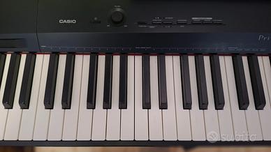 Vendo Piano digitale Casio PX160-BK 88 tasti pesati, completo di stand in legno Casio CS-67, pedale di sustain SP-3 e 60 spartiti in formato digitale di brani classici. Il pianoforte è perfettamente funzionante e in ottime condizioni estetiche, usato pochissimo, solo in casa. Unico difetto delle puntinature sui tasti bianchi all'estrema destra, come si può vedere in foto, dovute al panno nero di protezione della tastiera che ho usato per proteggerlo dalla polvere. Non spedisco, solo consegna a mano. Di seguito le principali caratteristiche: - Leggero e pratico piano digitale a 88 tasti - Polifonia 128 Note - Suono di pianoforte realistico con AiR - Altoparlanti con porting posteriore offrono un suono superiore - Modalità Duet rende questo strumento perfetto per le lezioni - Connessione USB e registratore a 2 tracce - Tastiera tri-sensore Scaled Hammer-Action II per un vero feeling di pianoforte - Ensemble d'archi e suoni di piano elettrico derivati dallo stage piano PX-55 - Speaker: 2 - Amplificatore: 8W x 2 - Audio Output: 2x 1/4", 2x Cuffie - MIDI I/O via USB - Input Pedale: 1x Damper - Colore: Nero - Dimensioni (solo piano senza stand): (H) 135 x 1322 x 286 mm - Peso (solo piano digitale): 11,1 kg - Peso (solo stand in legno): 11,34 kg