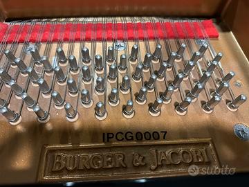 Vi presentiamo questo bellissimo pianoforte quarto di coda della marca svizzera Burger & Jacobi. Strumento interamente prodotto con componenti meccaniche europee.