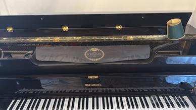 Pianoforte a muro Schimmel acquistato nel 1971 da Messaggerie Musicali di Milano, color marrone scuro con sgabello e certificato di acquisto.