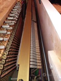 Il pianoforte Schulze Pollmann 116 con tre pedali, matricola 407518, bianco, è in ottime condizioni. Negli ultimi anni la Schulze Pollmann ha introdotto innovativi perfezionamenti che riguardano principalmente la tavola di risonanza e comprendono un nuovo studio della bombatura della tavola armonica e un nuovo ed esclusivo metodo di incollaggio della tavola armonica sui letti. La tavola armonica è realizzata con il rinomato legno Abete Rosso fornito dalla Ciresa - Val di Fiemme e le singole tavolette che la costituiscono sono unite tra loro ad incastro, così da garantire la massima stabilità e resistenza. Il suono notevolmente robusto e pastoso, di lunga durata nell'inviluppo con una perfetta uniformità timbrica su tutta l'estensione della tastiera e una grande limpidezza sonora. La meccanica Renner, che leader Europeo nelle meccaniche per pianoforte, è robusta e affidabile. La sua fluidità conferisce un tocco ed una consistenza della tastiera che rispecchiano il rigore dell'impostazione stilistica classica.