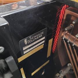 Pianoforte verticale nero lucido di produzione italiana Schulze Pollmann, modello 126E Classico, costruito a Pineta di Laives, provincia autonoma di Bolzano, presso la fabbrica italiana Schulze Pollmann, con materiale tedesco di alta qualità Renner.