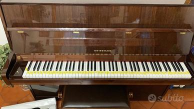 Elegante pianoforte verticale in legno, un classico strumento musicale. - Finitura in legno lucido. - Tastiera completa di 52 tasti bianchi e 36 tasti neri. - Dimensioni: Altezza cm 120 - Larghezza cm 145 - Profondità cm 60. Completamente funzionante. La ben nota casa SEILER (ancora esistente) era conosciuta per la qualità dei suoi pianoforti. Prodotto a Kitzingen in Germania e come tutti i pianoforti SEILER monta la meccanica RENNER, garanzia di precisione del tocco e di prontezza della ripetizione oltreché di durata e resistenza all’usura. Questo esemplare fu costruito nel 1983 ed ha quindi più di quarant’anni. È però sorprendente vedere come sia stato suonato così poco da lasciare i martelletti intonsi come anche tutte le parti in movimento come feltri e guarnizioni. Sarà necessario solo fare una leggera registrazione della meccanica per ovviare al lungo periodo di inattività. Si tratta quindi di un pianoforte ancora tutto da sfruttare che potrà accompagnare lo studente dai primi anni fino anche all’accesso in Conservatorio quando sarà preferibile passare a un mezza coda. Oppure potrà dare grandi soddisfazioni anche al semplice amatore.