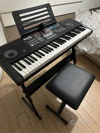 Vendesi tastiera RockJam pianoforte con sgabello, pedalina, supporto e cuffie per l’audio.