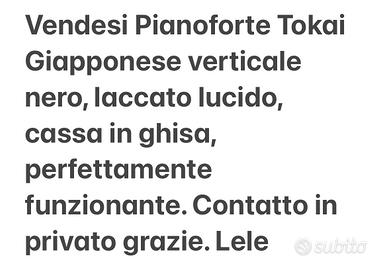 Vendesi Pianoforte Tokai Giapponese verticale, nero, laccato lucido, cassa in ghisa, perfettamente funzionante. Contatto in privato e prezzo trattabile. Grazie