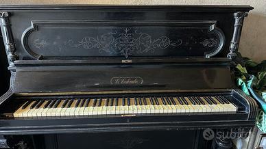 In vendita lotto di due pianoforti verticali d’epoca (fine Ottocento / inizio Novecento), perfetti per chi cerca pezzi di arredamento vintage con suono ancora utilizzabile o per scuole di musica, associazioni e appassionati. • 1x C. Colombo (marche italiana storica): uno con eleganti intarsi floreali e decorazioni sul pannello superiore, l’altro con finiture classiche nere lucide. Bei dettagli ornamentali, tastiera completa. • 1 x G. Hahn Berlin: pianoforte tedesco con linea sobria e decorazioni lineari sul fronte. Tutti e due sono in legno nero, con meccanica tradizionale. Sono strumenti d’epoca che necessitano di accordatura e manutenzione PREZZO TRATTABILE