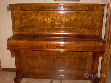 Vendo elegante pianoforte verticale antico, realizzato in legno pregiato con intarsi floreali. Un pezzo unico dal fascino senza tempo, perfetto sia per musicisti che per collezionisti o appassionati di arredamento classico.