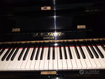 Causa trasloco, vendo pianoforte a muro J. C. Baer nero, in buonissime condizioni. Completo di sgabello originale
