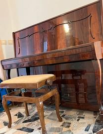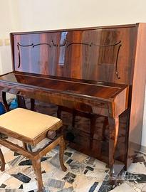 Vendo pianoforte verticale Beryozka, in elegante finitura legno lucido con dettagli decorativi in stile classico.