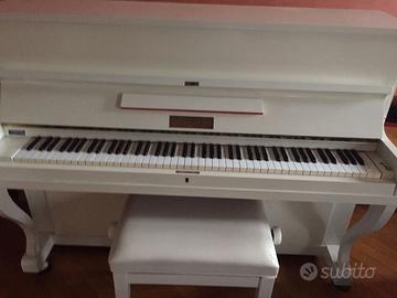 Pianoforte verticale di colore bianco marca GLAISBERG compreso lo sgabello in pelle sempre di colore bianco, venduti insieme. NO SPEDIZIONE