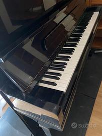 Pianoforte verticale marca Furcht and Söhne in ottime condizioni. L'ho usato per studio al conservatorio per vari anni, a suo tempo l'avevo acquistato dalla mia insegnante di pianoforte. La meccanica è stata modificata aggiungendo il doppio scappamento, presente di solito solo nei pianoforti a coda. Il doppio scappamento consiste in un piccolo "scalino" che si percepisce a metà tasto quando lo si schiaccia delicatamente. Serve per i passaggi specifici in pianissimo, in quanto con la corretta tecnica si riesce a produrre un suono molto piano e delicato.