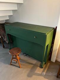 Completo di sgabello coordinato e copritasti, è ideale sia come strumento da rimettere in funzione sia come elemento d’arredo di grande personalità per loft, studi creativi o interni ricercati.