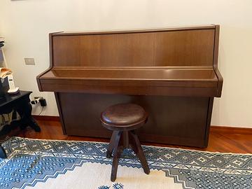 Pianoforte verticale noce con seggiolino rivestito di pelle in tinta