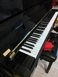 Vendo splendido pianoforte verticale a muro Furstein, marchio storico della produzione italiana (Farfisa), noto per l'ottimo rapporto qualità-prezzo e la solidità costruttiva. Il pianoforte si presenta in un'elegante finitura nero lucido a specchio, perfetta per arredare con classe qualsiasi ambiente, dal soggiorno allo studio. Dettagli tecnici e stato dell'oggetto: Marca: Furstein. Modello: Verticale a muro. Colore: Nero lucido con finiture interne dorate. Condizioni estetiche: Ottime, mobile ben conservato come visibile in foto. unico difetto un pò di vernice scorticata sul piede sinistro. Meccanica: Tastiera completa, tasti bianchi e neri in perfetto stato estetico. Accessori inclusi: Panca imbottita regolabile in ecopelle nera, coordinata al pianoforte. Note per l'acquirente: Il pianoforte è stato utilizzato con cura in ambiente domestico. Come per ogni trasporto di strumenti acustici, si consiglia una revisione dell'accordatura dopo il posizionamento nella nuova sede. Ritiro e trasporto: A carico dell'acquirente (si trova al piano primo). Zona: Gravina di Catania