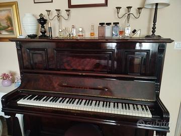 Pianoforte inglese verticale antico in radica di noce acquistato negli anni 80 e ha mantenuto unico proprietario. Meccanica totalmente ripristinata necessita soltanto di accordatura. Consigliato per studio allievi principianti. il pianoforte si trova al terzo piano trasporto a carico dell'acquirente