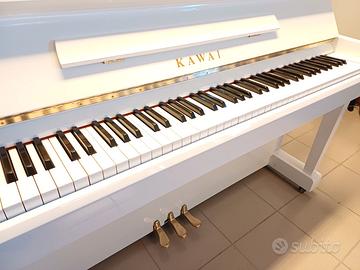 Pianoforte verticale KAWAI NS-10, bianco lucido, 88 tasti, 3 pedali, matricola visibile in foto.