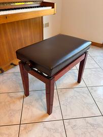 Insieme al pianoforte è incluso uno sgabello color bordeaux, con seduta morbida in pelle, abbinato e molto confortevole.