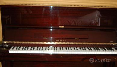 Vendo Pianoforte Verticale Samick SU 121 usato poco, in buone condizioni, come da foto. Da accordare e manca il panno di feltro (sordina) per ovattare il suono. Solo persone veramente interessate. Ritiro a mano, non spedisco.