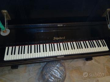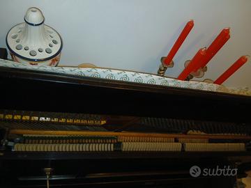 Vendo pianoforte verticale Schubert, originale degli anni Quaranta, in finitura nera lucida con filetti dorati e portacandele in ottone.