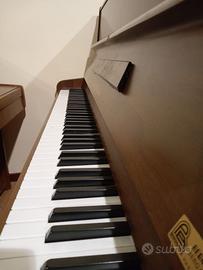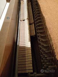 Il pianoforte Schulze Pollmann 116 con tre pedali, matricola GA12TU, noce satinato, è in ottime condizioni. Negli ultimi anni la Schulze Pollmann ha introdotto innovativi perfezionamenti che riguardano principalmente la tavola di risonanza e comprendono un nuovo studio della bombatura della tavola armonica e un nuovo ed esclusivo metodo di incollaggio della tavola armonica sui letti. La tavola armonica è realizzata con il rinomato legno Abete Rosso fornito dalla Ciresa - Val di Fiemme e le singole tavolette che la costituiscono sono unite tra loro ad incastro, così da garantire la massima stabilità e resistenza. Il suono notevolmente robusto e pastoso, di lunga durata nell'inviluppo con una perfetta uniformità timbrica su tutta l'estensione della tastiera e una grande limpidezza sonora. La meccanica Renner, che leader Europeo nelle meccaniche per pianoforte, è robusta e affidabile. La sua fluidità conferisce un tocco ed una consistenza della tastiera che rispecchiano il rigore dell'impostazione stilistica classica.