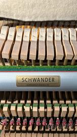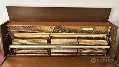 Vendo splendido pianoforte verticale Schulze Pollmann, Meccanica Schwander, modello 112, prodotto nella storica fabbrica di Bolzano (Pineta di Laives). Lo strumento è un’eccellenza dell'artigianato italo-tedesco, ideale sia per lo studio professionale che per l'amatore esigente. Caratteristiche principali: • Meccanica di alto livello: Monta l'originale meccanica Schwander (Herrburger Brooks Ltd), celebre per la precisione del tocco e l'affidabilità nel tempo. • Condizioni: Internamente perfetto, corde e martelletti in ottimo stato di conservazione. Mobile in pregiato noce satinato, molto elegante e ben tenuto. • Dimensioni: Altezza 112 cm, perfetto per ambienti domestici senza rinunciare a una sonorità ricca e profonda. • Storia: Certificato di controllo originale del 25/01/1980 (Matricola EA21XK). Il pianoforte è stato conservato con cura in ambiente idoneo. È uno strumento pronto a suonare, con un timbro dolce e tipicamente europeo.
