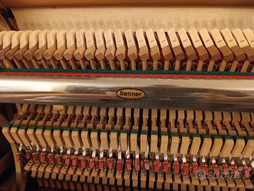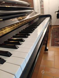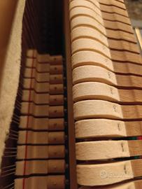 Strumento italiano di dimensioni generose (H 136, L 145, profondità 65), meccanica Renner leggera e scorrevole, tavola armonica integra (abete della Val di Fiemme), tastiera con coperture in galalite (sbiancata), martelliera in ottime condizioni (rasata appena un po'), sostituite molle di richiamo delle noci e bretelline, riverniciato e lucidato a gomma lacca il mobile; numero matricola 11020 (1959). Ottimo strumento dal suono "europeo", per studenti avanzati o amatori. Spese di trasporto a carico del compratore. Si trova a piano terra.