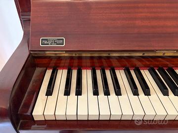Vendo pianoforte verticale Spencer, classico modello inglese, in finitura mogano lucido e dal design elegante, perfetto per studio, salotto o ambienti raffinati. modello upright piano (verticale) 2 pedali (soft + sustain) finitura mogano rosso lucido struttura solida, con pannelli lavorati in stile tradizionale condizioni estetiche molto buone mobile ben conservato meccanica funzionante naturalmente da accordare, fornito di chiave originale. Comprato nuovo anni 90 ma suonato solo inizialmente per esercizi qualche anno, conservato sempre in ambiente domestico (Soggiorno asciutto e privo di polvere) Pianoforte ideale per principianti, studenti o per chi desidera un pezzo d’arredo elegante e funzionante. Visibile e provabile senza impegno a marigliano. Scrivete in chat su subito per qualsiasi informazione o per fissare un appuntamento prezzo trattabile.