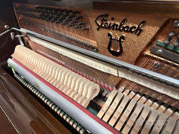 Proponiamo in vendita questo bellissimo pianoforte Steinbach, verticale,color noce in stile Chippendale! Pianoforte che monta la famigerata meccanica Renner, tra le migliori meccaniche in produzione! Suono caldo e morbido, tipico stile europeo/romantico, mobile elegante e con rifiniture pregiate. Tastiera leggera e meccanica in buonissimo stato. Pianoforte adatto a chi si appresta allo studio dello strumento senza voler rinunciare alla bellezza timbrica. Compreso nel prezzo ( non ivato ) : -trasporto entro 50km a piano terra (altrimenti piccolo contributo aggiuntivo) -accordatura da fare in sede; -sgabellino seminuovo; -5 anni di garanzia. Per info: