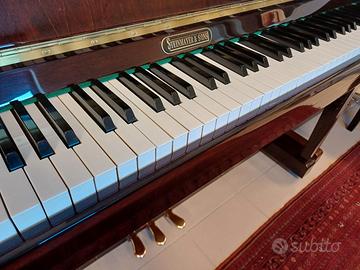 Pianoforte verticale STEINMAYER & SONS Mod. Classico, colore mogano scuro, 88 tasti, 3 pedali, matricola visibile in foto. Dimensioni: L 151 x P 59,5 x H 118 cm. Pianoforte di recente costruzione, in ottime condizioni, completamente revisionato nel nostro laboratorio e garantito. Meccanica precisa ed affidabile, suono nitido. Per struttura costruttiva e dimensioni paragonabile allo Yamaha U1. Ottimo rapporto qualità/prezzo! E’ disponibile per prova nella nostra show-room di Paese (TV) POSSIBILITA’ DI FINANZIAMENTO PER PAGAMENTO RATEALE SENZA ANTICIPO. Possibilità di consegna in tutta Italia. VM PIANOFORTI. Da venticinque anni ci occupiamo esclusivamente di pianoforti garantendo PROFESSIONALITA’, COMPETENZA, QUALITA’ e CONVENIENZA nella vendita, noleggio, accordatura, assistenza tecnica, trasporto, manutenzione e restauro di ogni tipo di pianoforte verticale e a coda. Nella nostra show-room troverete un vasto assortimento di PIANOFORTI VERTICALI e a CODA moderni, in stile e d’occasione con garanzia e assistenza diretta. Trattiamo pianoforti dei migliori marchi europei (che importiamo anche direttamente) oltre ai noti marchi giapponesi Yamaha e Kawai. Sono disponibili pianoforti a NOLEGGIO delle MIGLIORI MARCHE a partire da Euro 30,00/mese, con possibilità di riscatto. Vendiamo e noleggiamo solo pianoforti di QUALITA’ GARANTITA!!! Ci occupiamo direttamente del trasporto e consegna a domicilio del cliente. L’assistenza tecnica post vendita/noleggio (accordatura, manutenzione, ecc.) è garantita dal nostro laboratorio che vanta un’esperienza più che ventennale nella manutenzione e restauro di pianoforti verticali e a coda. Forniamo un servizio completo di assistenza tecnica per CONCERTI ed EVENTI con noleggio dei più prestigiosi pianoforti a coda (Yamaha, Kawai, Steinway & Sons). Siamo accreditati AIARP (Associazione Italiana Accordatori e Riparatori Pianoforti). Per info: tel. – info@vmpianoforti.it