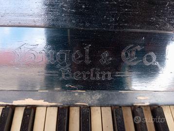 Pianoforte verticale vintage Kugel & Co. Berlin, da restaurare e accordare. Misure Lunghezza 1,52 m × H 1,40 m x 90 cm di profondità. Purtroppo è da qualche anno che sta su un balcone, ha bisogno di restauro e di essere accordato. Ritiro presso abitazione