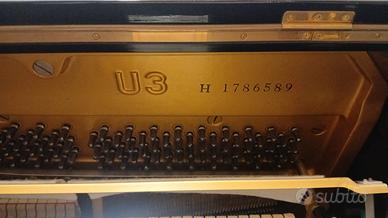 Pianoforte verticale Yamaha modello U3, nero lucido, 131 cm di altezza. Strumento d’occasione ricondizionato dalla Casa Madre (vedi certificato allegato). Meccanica perfetta! Misure: L 153 P 65 H 131 Trasporto a carico dell'acquirente. No perditempo