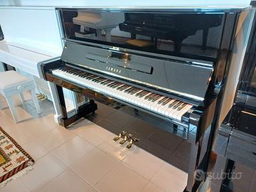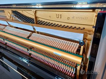 Pianoforte verticale Yamaha mod. U1 H, nero lucido, 88 tasti, 3 pedali, matricola visibile in foto.