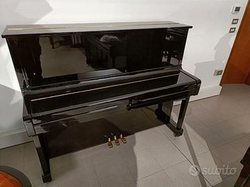 Pianoforte verticale nero con sistema silent genio premium installato presso il nostro laboratorio.