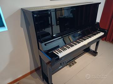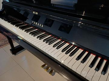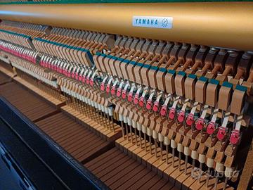 Pianoforte verticale YAMAHA mod. YUA, nero lucido, 88 tasti, 3 pedali (con pedale tonale), matricola visibile in foto.