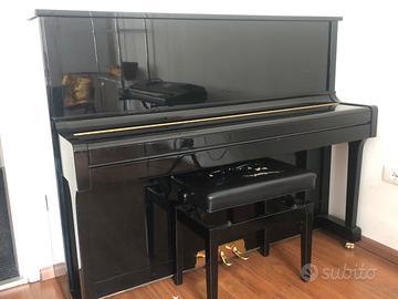 Vendo pianoforte verticale Wendl & Lung in ottime condizioni, finitura nero lucido, sempre tenuto con cura. Suono caldo e potente, meccanica precisa: ideale per studio e uso domestico. Tastiera e pedali perfettamente funzionanti. Misure standard: circa 145 cm (L) – 60 cm (P) – 120 cm (H) Incluso sgabello (da rifoderare nella seduta) Visionabile e provabile. Prezzo trattabile. Trasporto a carico dell’acquirente (possibile supporto per contatto trasportatore).