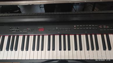 Vendo pianoforte digitale Yamaha Clavinova CLP-F01 con tasti pesati in legno, acquistato a dicembre 2006 al prezzo di 3.200€ (allego scontrino). Unico proprietario. Sostituiti i feltri smorzatori (stopper) nel 2021 da assistenza Yamaha (disponibile report riparazione). Il pianoforte funziona perfettamente sia con gli altoparlanti che in cuffia. Ottimo da affiancare a un pianoforte acustico, per lo studio di sera o in cuffia. Il mobile del pianoforte presenta alcuni lievi graffi (sul fianco destro e sui rivestimenti anteriori in velluto). Incluso nel prezzo panchetta originale. Solo consegna a mano a Milano, con trasporto a carico dell'acquirente. I fianchi laterali e quello superiore, di colore rosso, si possono facilmente smontare. Lo stabile è dotato di ascensore 9 posti (in cui il pianoforte entra facilmente in orizzontale) che conduce alla corsia dei box. Lo strumento, adagiato sul pannello posteriore, può essere trasportato in un vano di un auto di medie - grandi dimensioni. Di seguito la descrizione dello strumento, tratta da internet.