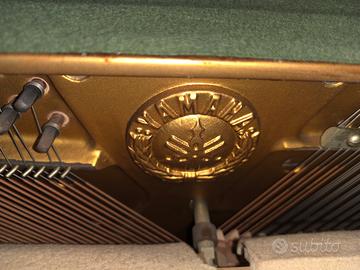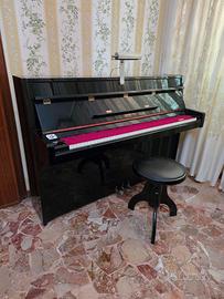 Nero laccato in ottime condizioni come da foto allegate , sgabello in legno nero regolabile e lampada per lettura spartiti.