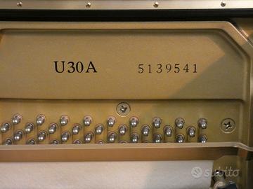 La casa YAMAHA,il più grande fabbricante di pianoforti del mondo,produceva un gran numero di modelli di cui solo una parte venivano inviati in Europa. Il modello U 30 non è mai arrivato in Europa da nuovo ma arrivano adesso esemplari usati dal Giappone.Il modello U 30 si distingue per maggiore sonorità rispetto al più diffuso U 3. Tali modelli erano,e sono, la maggiore espressione del pianoforte verticale YAMAHA specificamente destinato agli studenti del Conservatorio che, per motivi di spazio,non possono avere il mezza coda.La pesatura della tastiera piuttosto consistente unitamente alla grande sonorità consentono allo studente di preparare gli esami di Conservatorio. Questo esemplare è stato fabbricato nel 1990 ed è nato con silenziamento originale YAMAHA consentendo di suonare e studiare anche in orari serali senza disturbare i vicini.