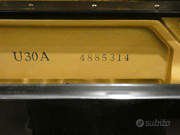 La casa YAMAHA,il più grande fabbricante di pianoforti del mondo,produceva un gran numero di modelli di cui solo una parte venivano inviati in Europa. Il modello U 30 non è mai arrivato in Europa da nuovo ma ne arrivano adesso alcuni esemplari usati dal Giappone.Il modello U 30 si distingue per maggiore sonorità rispetto al più diffuso U 3. Tali modelli erano,e sono, la maggiore espressione del pianoforte verticale YAMAHA specificamente destinato agli studenti del Conservatorio che, per motivi di spazio,non possono avere il mezza coda.La pesatura della tastiera piuttosto consistente unitamente alla grande sonorità consentono allo studente di preparare gli esami di Conservatorio. Questo esemplare è stato fabbricato nel 1990 ed è nato con silenziamento originale YAMAHA consentendo di suonare e studiare anche in orari serali senza disturbare i vicini.