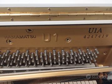 Vendesi pianoforte verticale Yamaha U1 A bianco lucido matricola 4247419 costruito in Giappone nel 1987 usato in condizioni perfette, venduto per il mercato italiano e non di importazione, come si può vedere dalla scritta Hamamatsu e made in Japan.