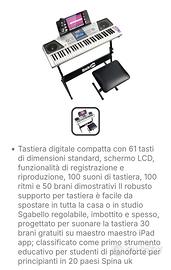 Tastiera digitale compatta 61 tasti, completa di supporto e sgabello regolabile imbottito. Come nuova, in perfette condizioni. Visionabile senza impegno. No spedizione
