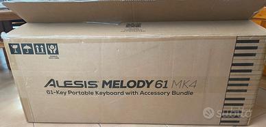 Tasti compatti - Tastiera musicale con 61 tasti, perfetti per aiutare principianti di ogni età a sviluppare forza e destrezza nelle dita Grande libreria di suoni - 300 suoni dinamici organizzabili modalità in layer o split, effetti di sustain/vibrato, 300 ritmi di accompagnamento con accordi automatici, 30 song demo Include un pacchetto completo di accessori - Supporto per pianoforte regolabile in altezza, uno sgabello facile da montare, leggio per spartiti/tablet, cuffie e adattatore Funzioni divertenti per lo studio - Metronomo; modalità Record per riascoltare le proprie esecuzioni; accompagnamento con accordi automatici per la creazione di brani in oltre 300 generi differenti Pronto a viaggiare - Melody 61 è leggero (3kg), facile da trasportare e può funzionare con 6 batterie formato AA (non incluse), per cui puoi davvero portarlo con te e suonare dappertutto Connessione USB-MIDI - Collega la tastiera a un Mac/PC per usare i software di registrazione e didattici più famosi, come ad esempio le esclusive lezioni di Skoove e Melodics Resta connesso - Ingresso pedale di sustain da 1/4", ingresso Aux da 1/8" per il collegamento di un telefono o un tablet e uscita cuffie da 1/8" che esclude il suono dei diffusori integrati
