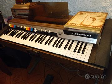 pianola EKO TIGER 61 anno 1970 con supporto, pedale, custodia in similpelle ed in aggiunta batteria elettronica NEW RHYTHM BOX anch'essa completa di pedale e cavo di collegamento alla pianola (vedi fotografie)