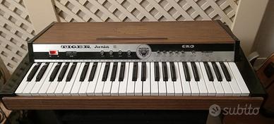 Pianola Tastiera Rhythm Machine Eko Tiger Junior R, Made In Italy, 4 preset sound, 5 preset rhythm, altoparlante incorporato, chassis in legno, punto di forza il sound della batteria analogica anni '60, alcuni tasti della tastiera non suonano e vanno sistemati, per amanti vintage sounds, misure l. a. p. 78 x 10 x 42 cm, posso spedire