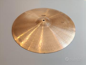 Piatto Paiste 505 Ride 20" (Black Label) Materiale: Bronzo B8 (Paiste 2002 Bronze) Peso: 2042 grammi Anno: 1980 Target: Professionale Condizioni strutturali: ottime. No keyhole, no crepe, no deformazioni o sbeccature. Buona planarità. Condizioni estetiche: Molto buone. Alcune piccole macchie cosmetiche. Loghi in buonissime condizioni. Ideati e progettati come successori della serie Stambul, i Paiste 505 furono lanciati sul mercato nel 1978 e idealmente facevano parte della famiglia dei 2002. La transizione dalla Serie Stambul alla Serie 505 non fu però lineare e immediata. Durante questo passaggio tra le due Serie, Paiste produsse diversi piatti di dimensioni e tipologie insolite, oggi ricercatissimi dai collezionisti. Esistono anche alcuni piatti che presentano sia la stampa Stambul che quella 505. La transizione dal primo logo a inchiostro di colore nero a quello verde serigrafato iniziò nel 1981. Esistono molti esemplari di Green Label 505 senza numero di serie. Nel periodo Green Label, la linea si espanse con piatti di altre tipologie, pesi e misure, prima di essere interrotta nel 1986. Tuttavia, la fabbrica tedesca continuò a offrire i 505 nei propri cataloghi fino al 1993 (molto probabilmente si trattava di rimanenze). Nel 1986 la Serie 505 fu sostituita nel prezzo dalla Serie 1000 e nel suono e nella qualità dalla Serie 2000. Ma come suonano i 505? "I piatti 505 producono un suono brillante e pieno. Sono stati sviluppati per offrire al batterista un piatto di ottima qualità. Tutti i piatti Paiste 505 offrono un suono professionale con una chiara definizione del carattere. I piatti ride hanno un suono potente e definito. I piatti multi-purpose medium possono essere utilizzati come potenti crash o per effetti ride delicati; i piatti crash offrono accenti compatti e incisivi".