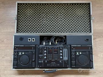 Console Pioneer completa (2 lettori CD CDJ-500S X + mixer DJM-300 + Case originale) per amatori del genere. Perfettamente funzionante. Con cablaggio cannon xlr. I lettori sono per CD audio (no mp3). Posso farli vedere in funzione, consegna a mano a Milano.