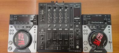 2 × Pioneer CDJ‑400 – lettori CD/USB/MP3, compatibili con chiavette USB e software come Rekordbox, Serato, Traktor, Virtual DJ.