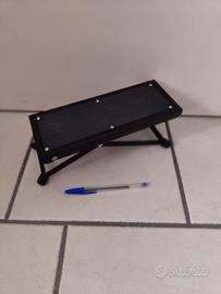 Poggiapiedi per chitarra con cuscinetto antiscivolo in gomma, regolabile in altezza. Dimensioni 25,5L x 10,5L x 25,5H cm.