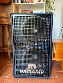 La ProAmp N212 è una cassa per basso 2x12” Made in Italy, progettata per essere leggera, portatile e potente. Dotata di due altoparlanti al neodimio da 12”, offre una potenza di 600W RMS (1200W handling).